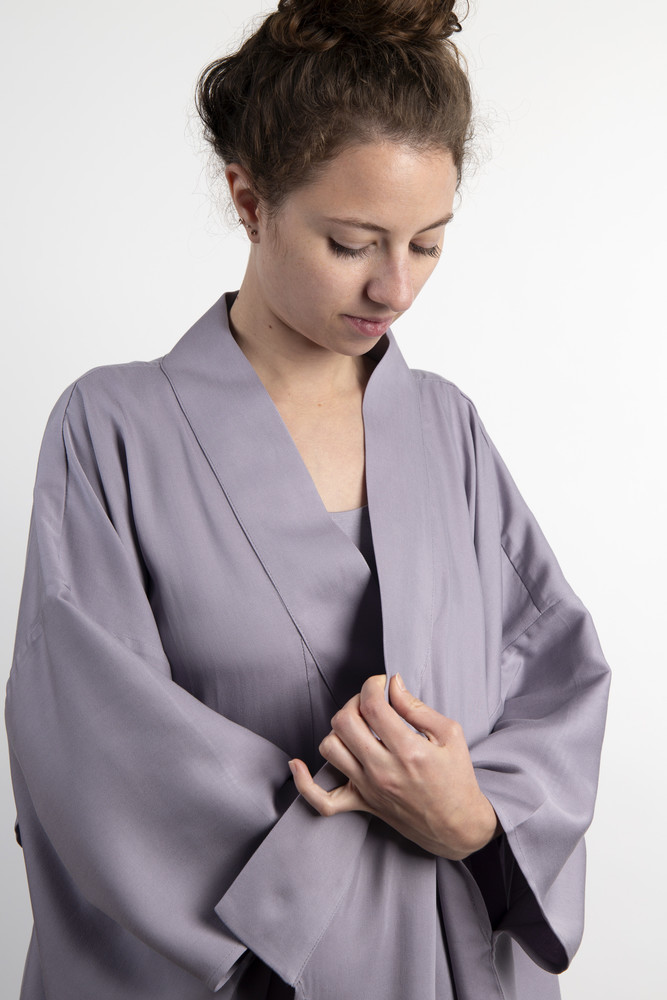 Du kommst nach einem langen Tag nach Hause und möchtest in etwas Gemütliches schlüpfen? Auch beim Frühstück oder nach dem Baden ist unser zeitloser Kimono N° 1 der perfekte Begleiter.